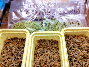 それから、半端を楽しむために4月に釣って冷凍していたイサキを解凍して甘辛く山椒煮。これは美味かった。そして山椒たっぷりちりめん山椒。ちりめんが高くて仕方がないから業務スーパーで250g540円なりで作ってみた。やはりちりめんは崩れているもの多かったが、山椒の助けが大きく十分美味しく作れた。京都鴨川沿いのちりめん山椒専門の老舗「はれま」さんを真似して汁気のほとんどないパラパラのでき。アツアツご飯に最高だった。