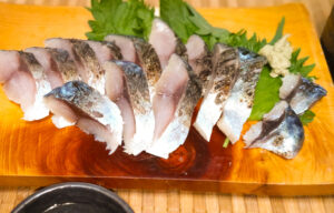 皮の焦げた風味と皮下の薄い脂が熱されて溶け出した旨味と冷たい〆鯖が一体になってうまいのなんの。