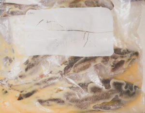フリーザーバッグLに西京味噌と酒分量は適当、イサキ全体が味噌色で覆われるくらいを入れて、イサキ(今回は10月に釣って冷凍しておいた20cmクラス4匹)を凍ったまま入れてよく揉む。